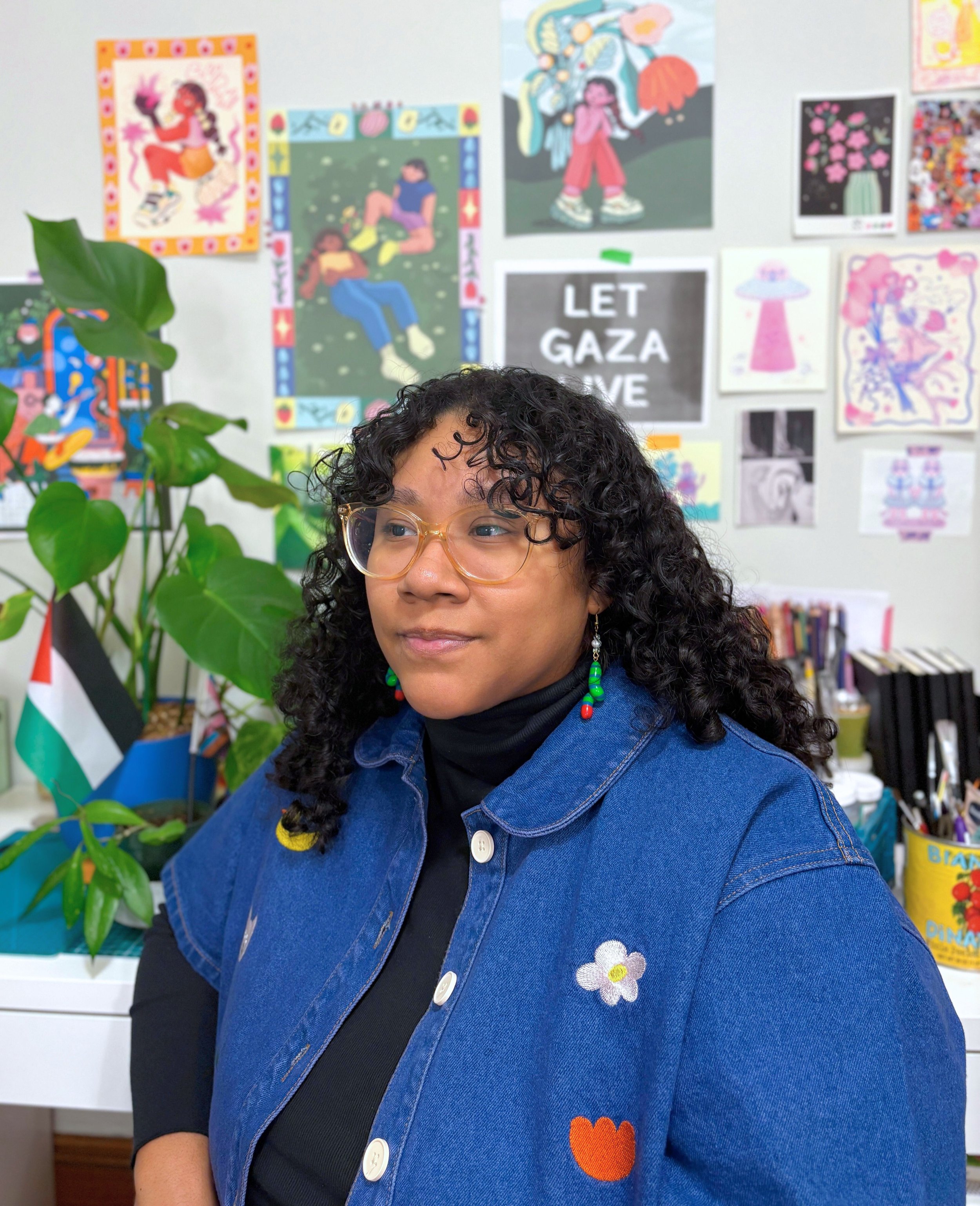 Their practice is rooted in visual storytelling that affirms identity, nurtures resilience, and reimagines liberation for QTBIPOC, especially queer black joy. Through portraiture and organic forms, they explore how grief, joy, and vulnerability coexist in daily life. Recurring motifs showcase growth and the presence of lived experience, while many portraits center Black women, often self-portraits, as acts of preservation and visibility. Preservation runs through their work, honoring cultural and familial histories, sustaining community voices, and practicing self-preservation as a Black genderqueer woman navigating erasure and harm.
